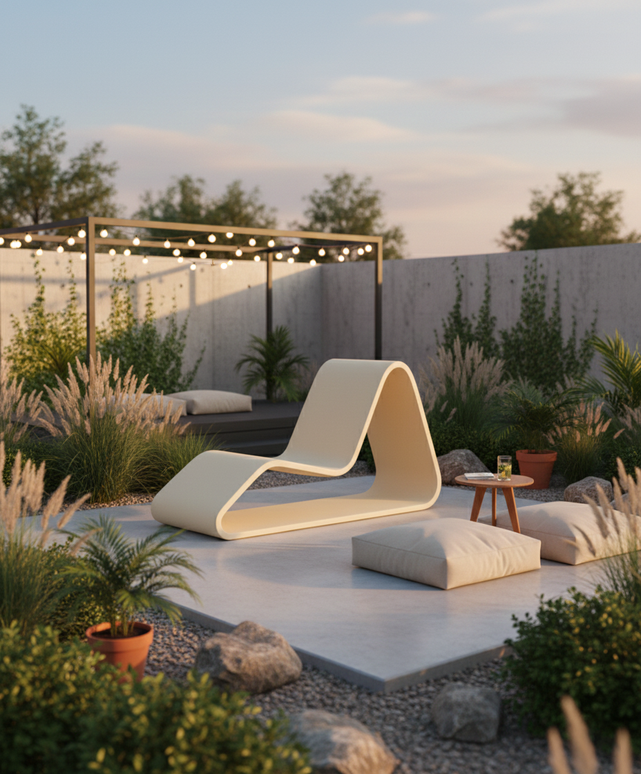 El Banc Rio és un banc–gandula urbana de disseny escultòric i contemporani, pensada per al descans en espais públics exteriors. La seva forma contínua i orgànica ofereix unaüençat confort tant assegut com reclinat, convertint-lo en una peça icònica que aporta identitat i caràcter a l’entorn urbà.